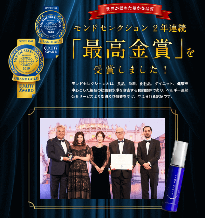 『NANO CLEAR(ナノクリア)』はモンドセレクション最高金賞👑を獲得するほどの実力です!