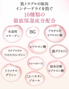 トラブルとなる乾燥を豊富な保湿効果で守り、トラブルができにくい肌を作ります。