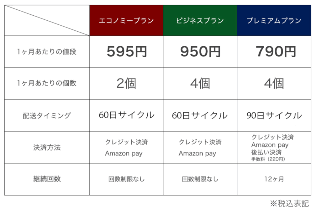 月1回の交換が目安の「ライトプラン」、2週間ごとの「スタンダードプラン」、そして週1回の「ヘビーユーザープラン」。