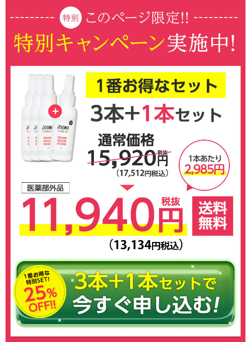 1番お得なセット、3本+1本セットが衝撃の13,134円!!