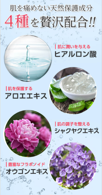 シャクヤクエキスで肌を整え、除毛後のデリケートな肌にアロエエキスが保護してくれます。
